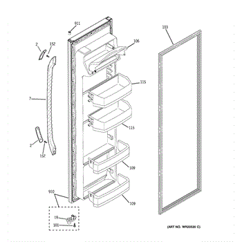 Outer door panel for your refrigerator. Installs on the front exterior of the door. Replace if cracked, dented, discolored, or damaged.