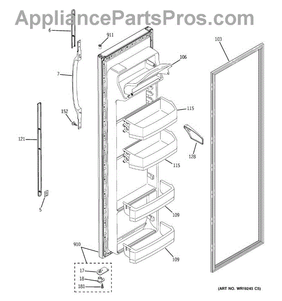 Replacement door handle for GE side-by-side refrigerators. Install this handle when your original is cracked, broken, discolored, or worn from years of use.