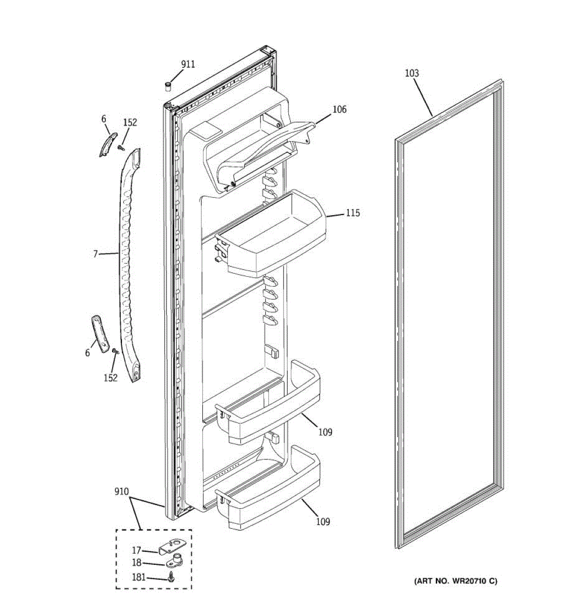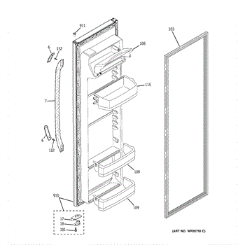 The Fresh Food Door Shelf is an OEM part for GE refrigerators. This part provides additional storage space on the refrigerator door for organizing and holding items like condiments, bottles, and jars, making them easily accessible.