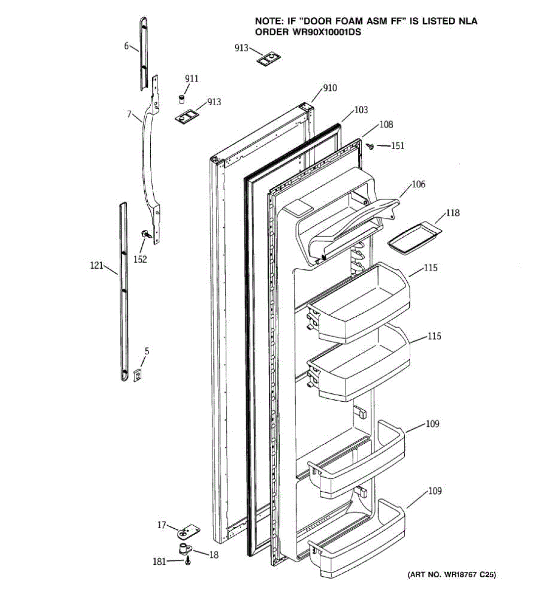 Replacement dairy door for refrigerator. Snaps into door to create covered compartment for butter and cheese. Needed when original is cracked or broken.