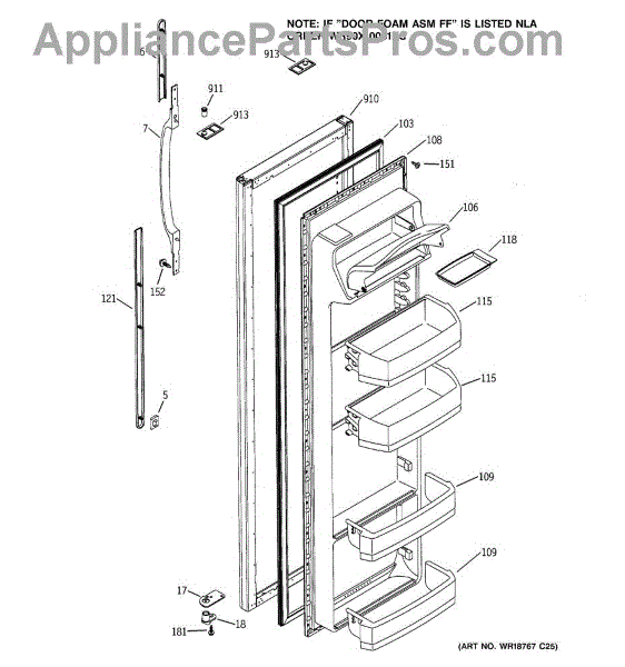 Replacement door handle for GE side-by-side refrigerators. Install this handle when your original is cracked, broken, discolored, or worn from years of use.