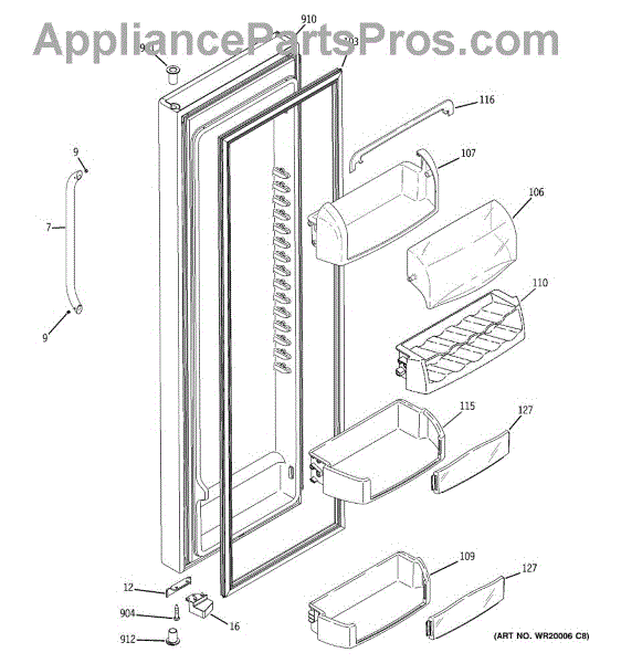 The Door Bin is an OEM part for GE refrigerators. It is a convenient storage compartment located on the interior of the refrigerator door, designed to hold and organize smaller items such as condiments, jars, or beverages.