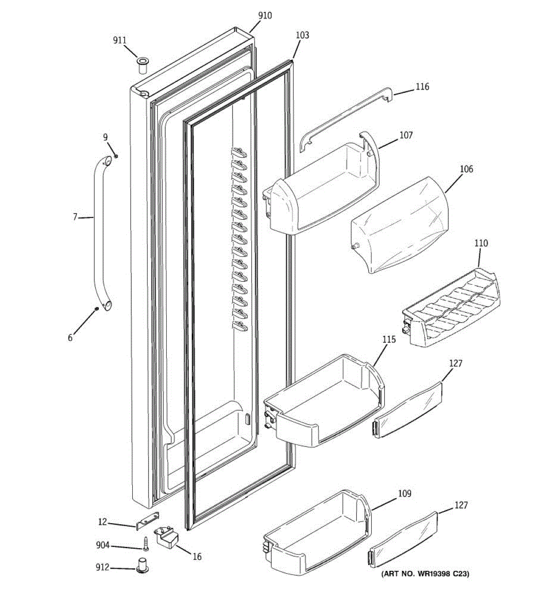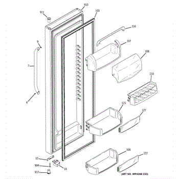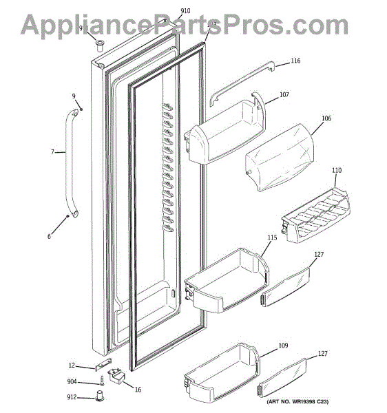 Replacement door bin for side-by-side refrigerators. Mounts inside the door to organize condiments, jars, and beverages. Replace if cracked or broken.