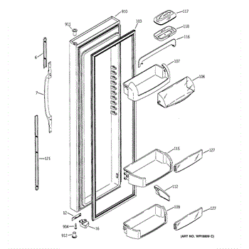 The Door Bin is an OEM part for GE refrigerators. It is a convenient storage compartment located on the interior of the refrigerator door, designed to hold and organize smaller items such as condiments, jars, or beverages.