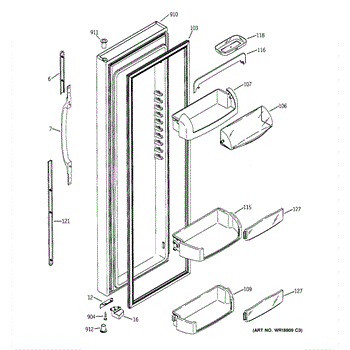 Replacement door bin for side-by-side refrigerators. Mounts inside the door to organize condiments, jars, and beverages. Replace if cracked or broken.