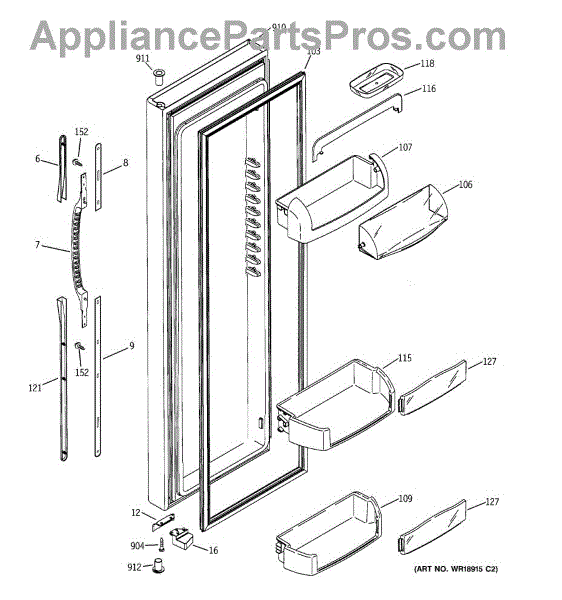 The Door Bin is an OEM part for GE refrigerators. It is a convenient storage compartment located on the interior of the refrigerator door, designed to hold and organize smaller items such as condiments, jars, or beverages.