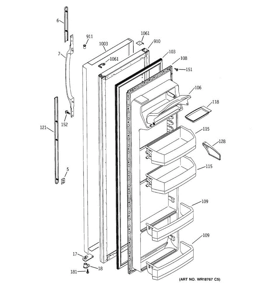 Parts for Ge GSS25SGMABS: 02 - Fresh Food Door Parts
