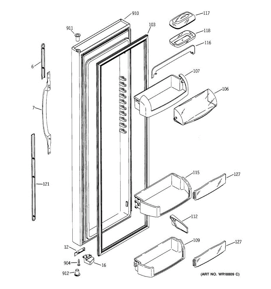 Storage bin that mounts on the refrigerator door's inner panel. Holds condiments, bottles, and jars. Replace if cracked, broken, or missing tabs.
