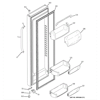 The Door Bin is an OEM part for GE refrigerators. It is a convenient storage compartment located on the interior of the refrigerator door, designed to hold and organize smaller items such as condiments, jars, or beverages.