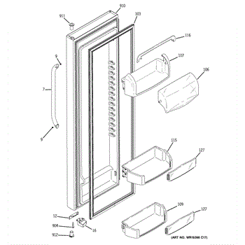 The Door Bin is an OEM part for GE refrigerators. It is a convenient storage compartment located on the interior of the refrigerator door, designed to hold and organize smaller items such as condiments, jars, or beverages.