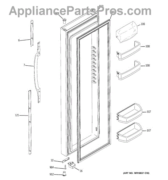 Parts for Ge GSS25VGSABB: 02 - Fresh Food Door Parts