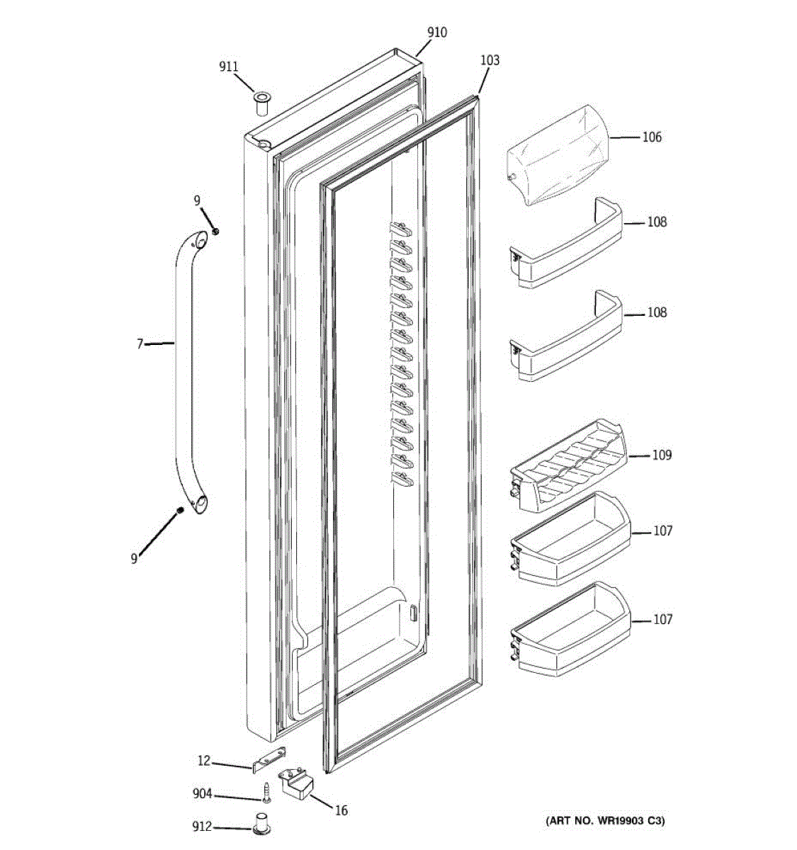 This replacement door bin mounts to the fresh food door and holds bottles, jars, and condiments. Replace a cracked or missing bin to restore organized, secure door storage and help prevent items from tipping during door movement. What it does