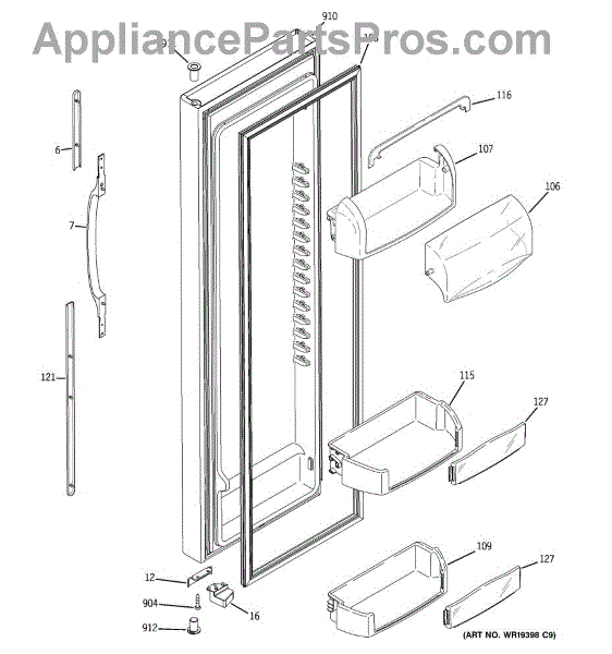 Parts for Ge GSS25XGPEBB: 02 - Fresh Food Door Parts