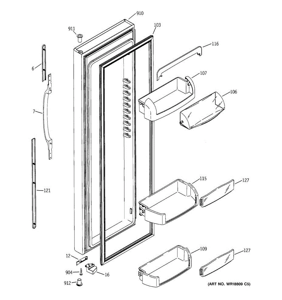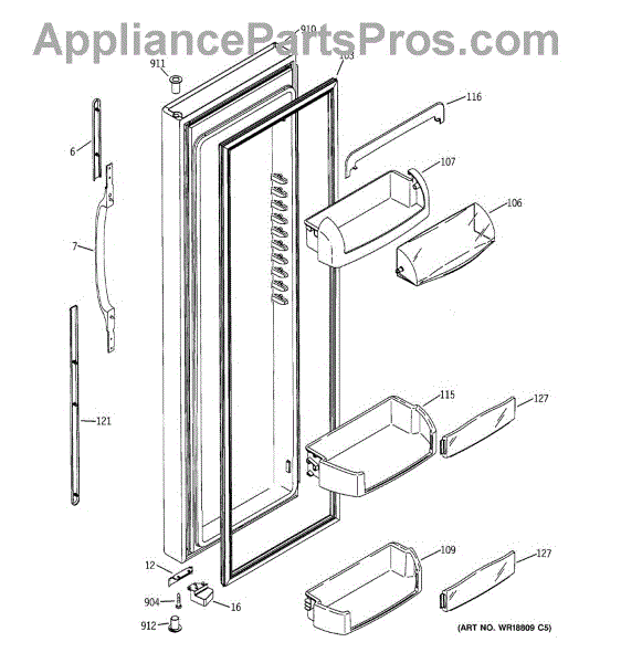 The Door Bin is an OEM part for GE refrigerators. It is a convenient storage compartment located on the interior of the refrigerator door, designed to hold and organize smaller items such as condiments, jars, or beverages.