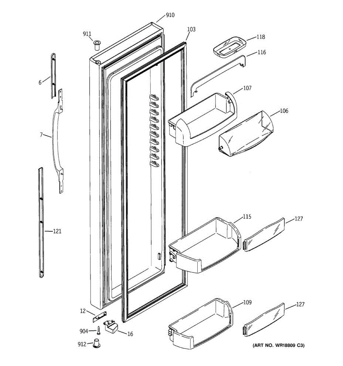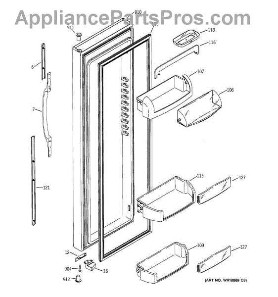 Parts for Ge GSS27RGMFCC: 02 - Fresh Food Door Parts