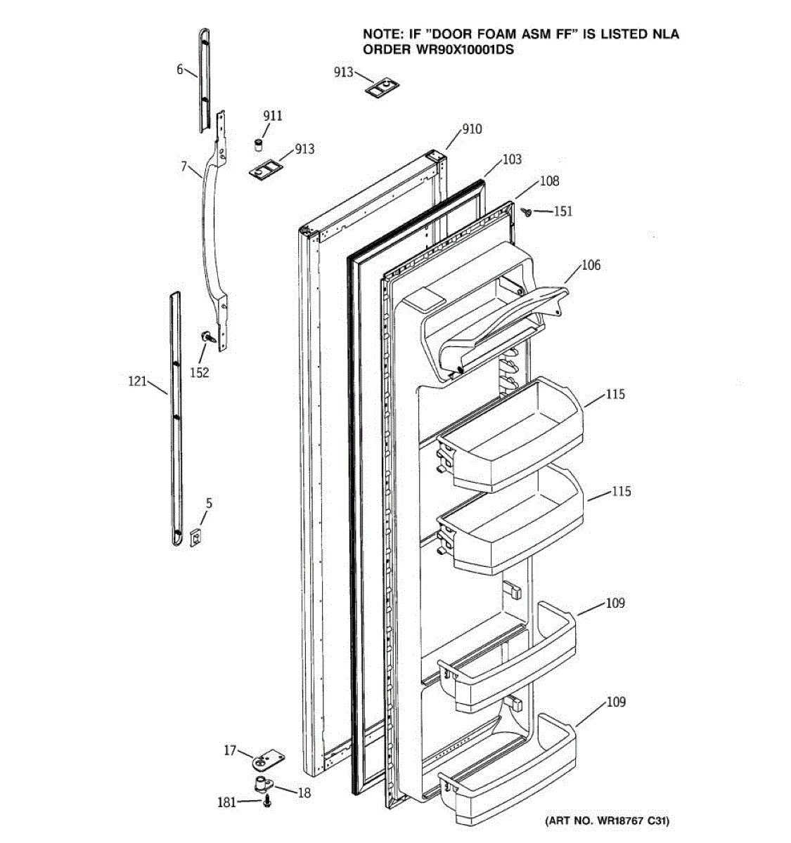 Replacement door handle for GE side-by-side refrigerators. Install this handle when your original is cracked, broken, discolored, or worn from years of use.