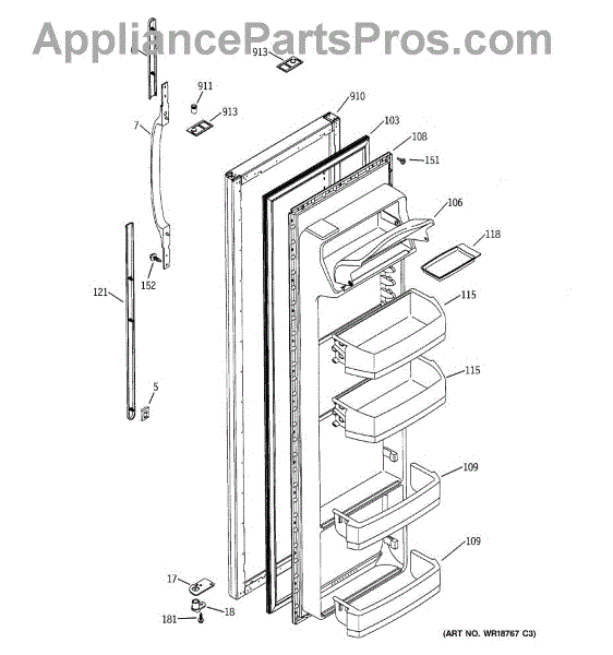 Replacement door handle for GE side-by-side refrigerators. Install this handle when your original is cracked, broken, discolored, or worn from years of use.
