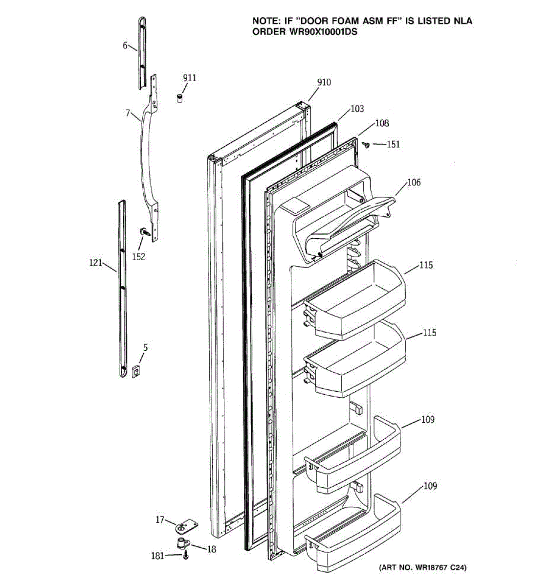 Replacement door handle for GE side-by-side refrigerators. Install this handle when your original is cracked, broken, discolored, or worn from years of use.