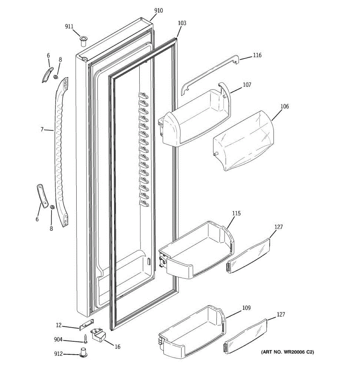 Clear plastic door cover for the dairy compartment in your refrigerator door. Replace if cracked, broken, or missing. Snaps into place, no tools needed.