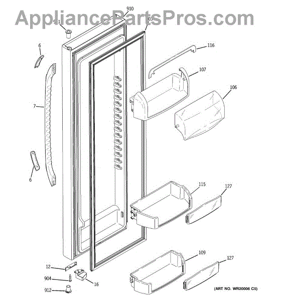 The Door Bin is an OEM part for GE refrigerators. It is a convenient storage compartment located on the interior of the refrigerator door, designed to hold and organize smaller items such as condiments, jars, or beverages.
