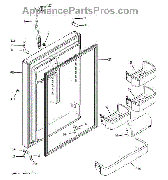 Parts for Ge GTH20JBBAWW: Fresh Food Door Parts