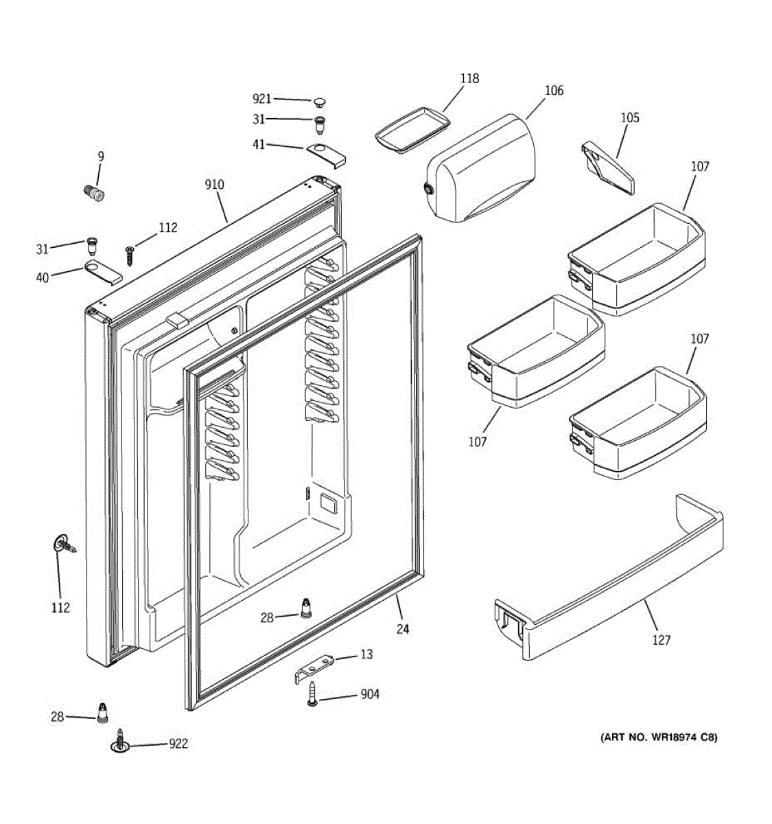 This fresh food door gasket creates an airtight seal around the refrigerator compartment door to prevent air leaks. Replacing a worn seal helps maintain stable temperatures, reduce moisture at the door, and restore proper closing and sealing.