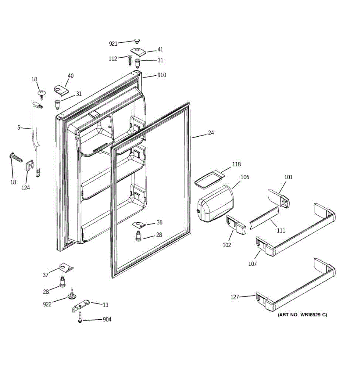 Parts for Ge GTS22ICMBRWW: 02 - Fresh Food Door Parts