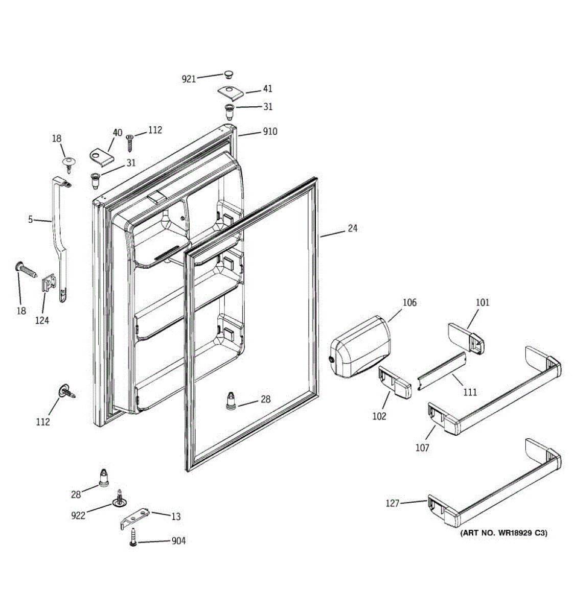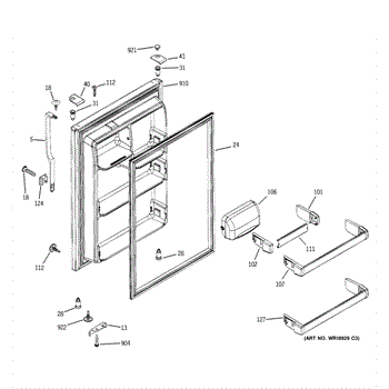 Magnetic door gasket that seals the fresh food compartment to maintain temperature and prevent frost buildup. Replace if torn, cracked, or failing the paper test. Verify fit with your model number.
