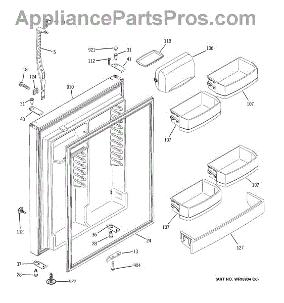 Parts for Ge GTS22KCMARBB: 02 - Fresh Food Door Parts