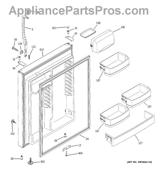 Parts for Ge GTS22WCPBRBB: 02 - Fresh Food Door Parts