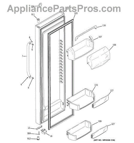 The Door Bin is an OEM part for GE refrigerators. It is a convenient storage compartment located on the interior of the refrigerator door, designed to hold and organize smaller items such as condiments, jars, or beverages.