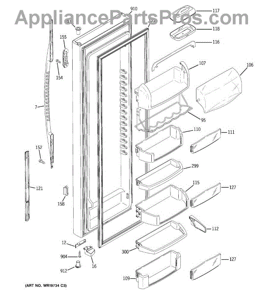 The Door Bin is an OEM part for GE refrigerators. It is a convenient storage compartment located on the interior of the refrigerator door, designed to hold and organize smaller items such as condiments, jars, or beverages.