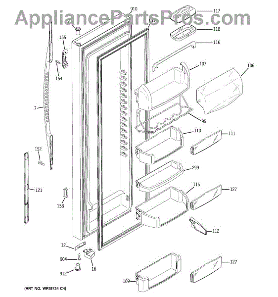 The Door Bin is an OEM part for GE refrigerators. It is a convenient storage compartment located on the interior of the refrigerator door, designed to hold and organize smaller items such as condiments, jars, or beverages.
