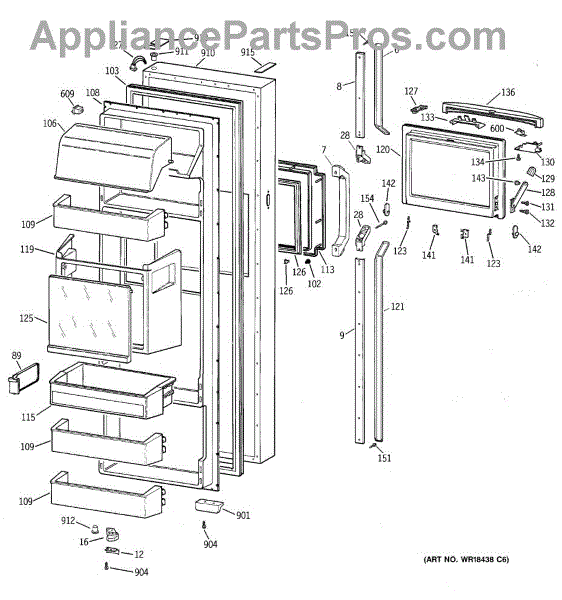 Parts for Ge MSK28DHZDAA: 02 - Fresh Food Door Parts