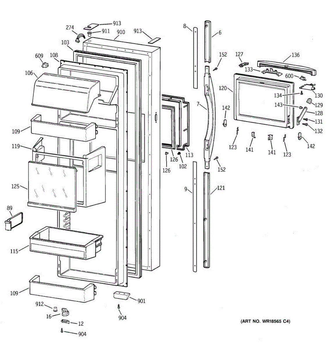 Parts for Ge MSK30DHBAAA: 02 - Fresh Food Door Parts