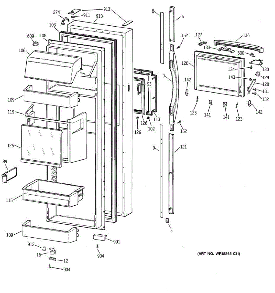 Parts for Ge MSK30DHBHAA: 02 - Fresh Food Door Parts