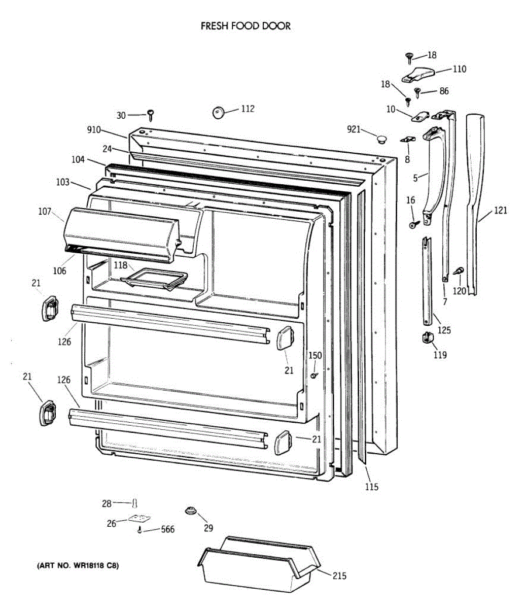 Seals the fresh food door to prevent cold air loss and maintain temperature. Replace if cracked, torn, or not sealing properly. Verify fit by model.