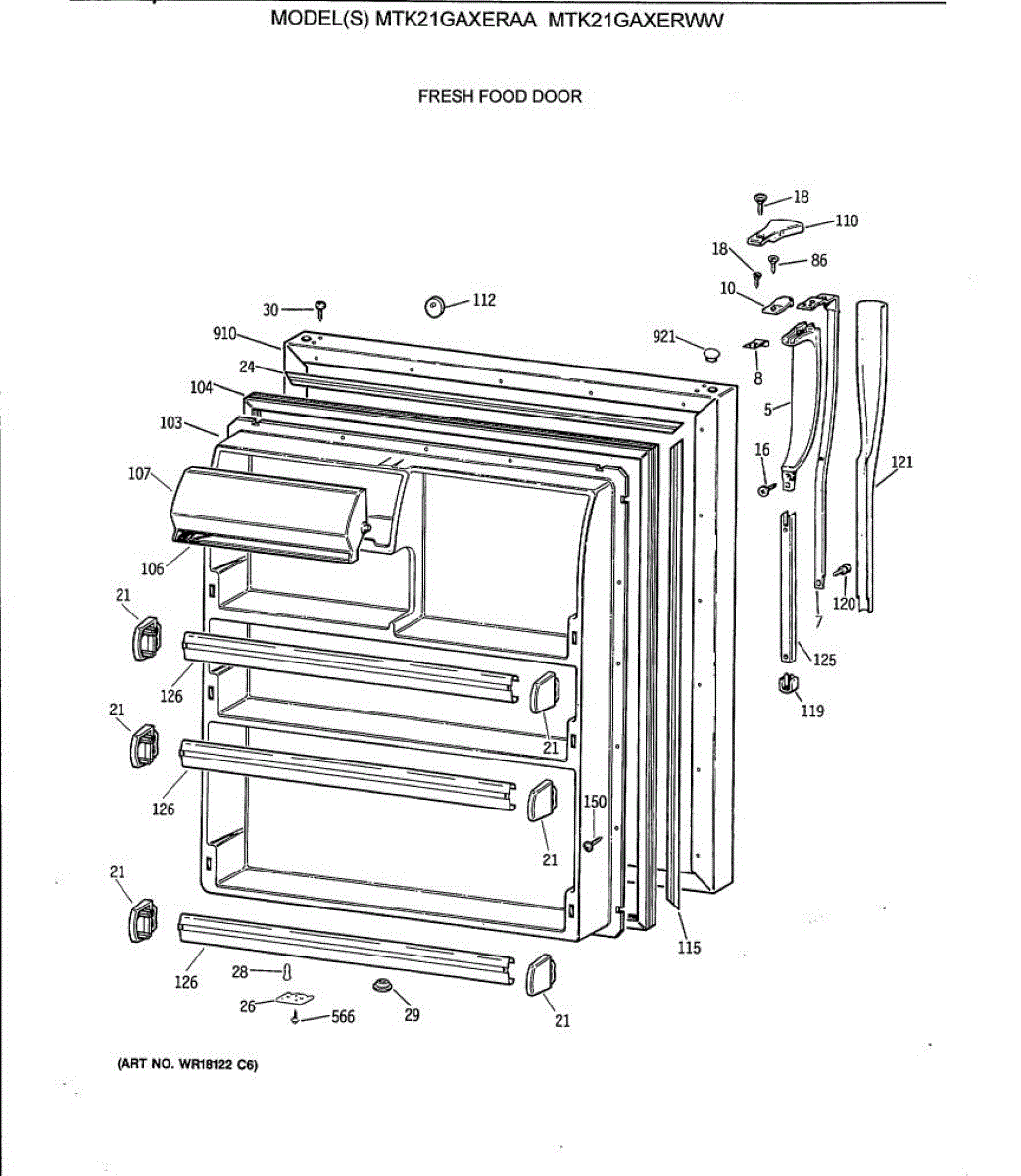 Seals your refrigerator's fresh food door to maintain temperature and prevent air leaks. Replace if you notice condensation, mold, or warm spots inside.