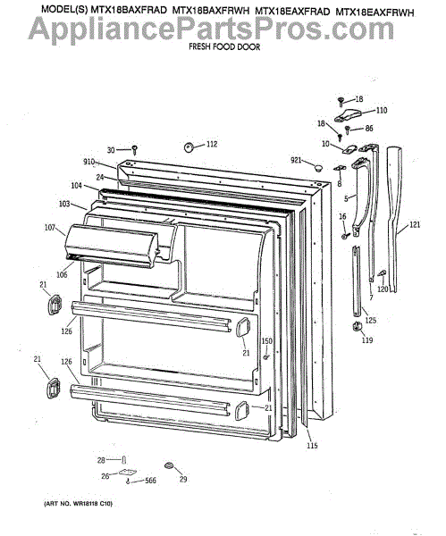 Parts for Ge MTX18EAXFRWH: 02 - Fresh Food Door Parts