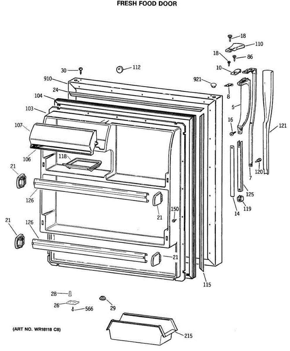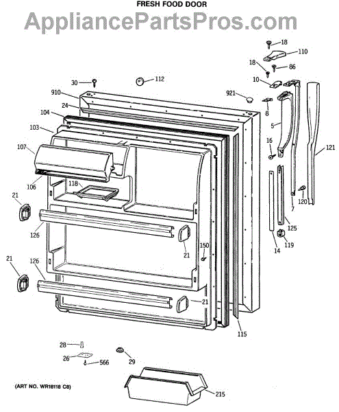Parts for Ge MTX18GISGRWH: 02 - Fresh Food Door Parts