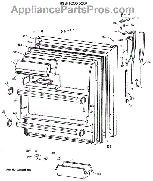 Parts for Ge MTX18GIXERAA: 02 - Fresh Food Door Parts