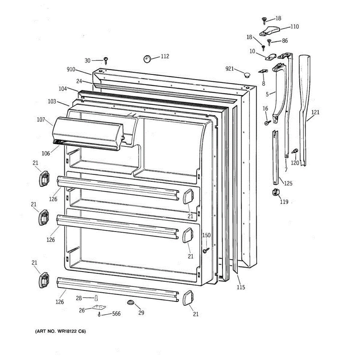 Parts for Ge MTX21BAXFRAD: 02 - Fresh Food Door Parts