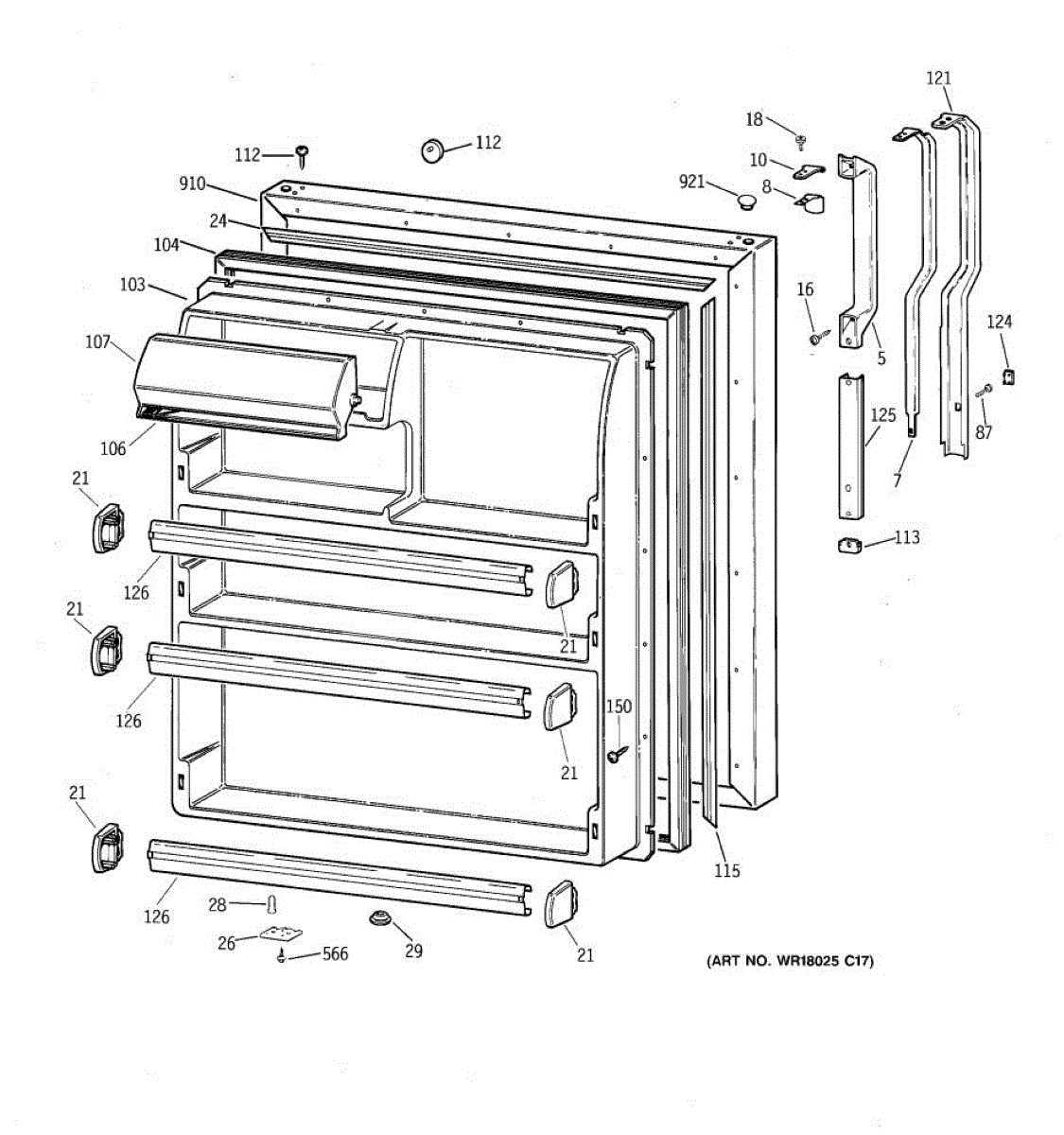 Parts for Ge MTX21DABLRAA: 02 - Fresh Food Door Parts