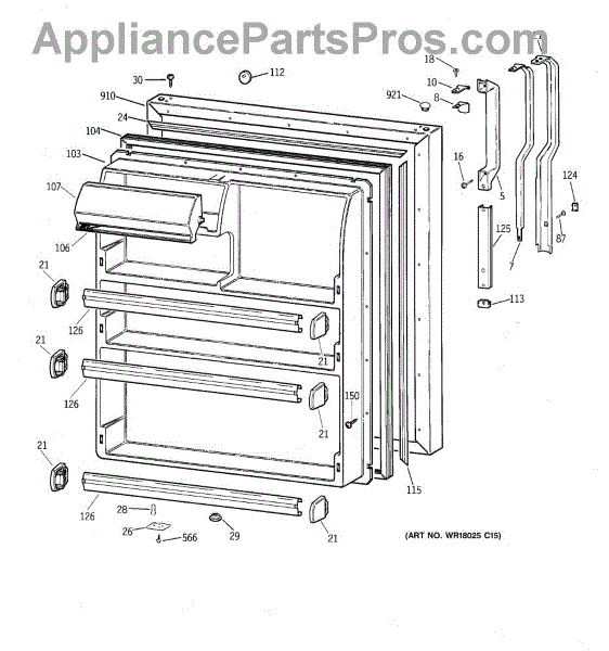 Seals your refrigerator's fresh food door to maintain temperature and prevent air leaks. Replace if you notice condensation, mold, or warm spots inside.