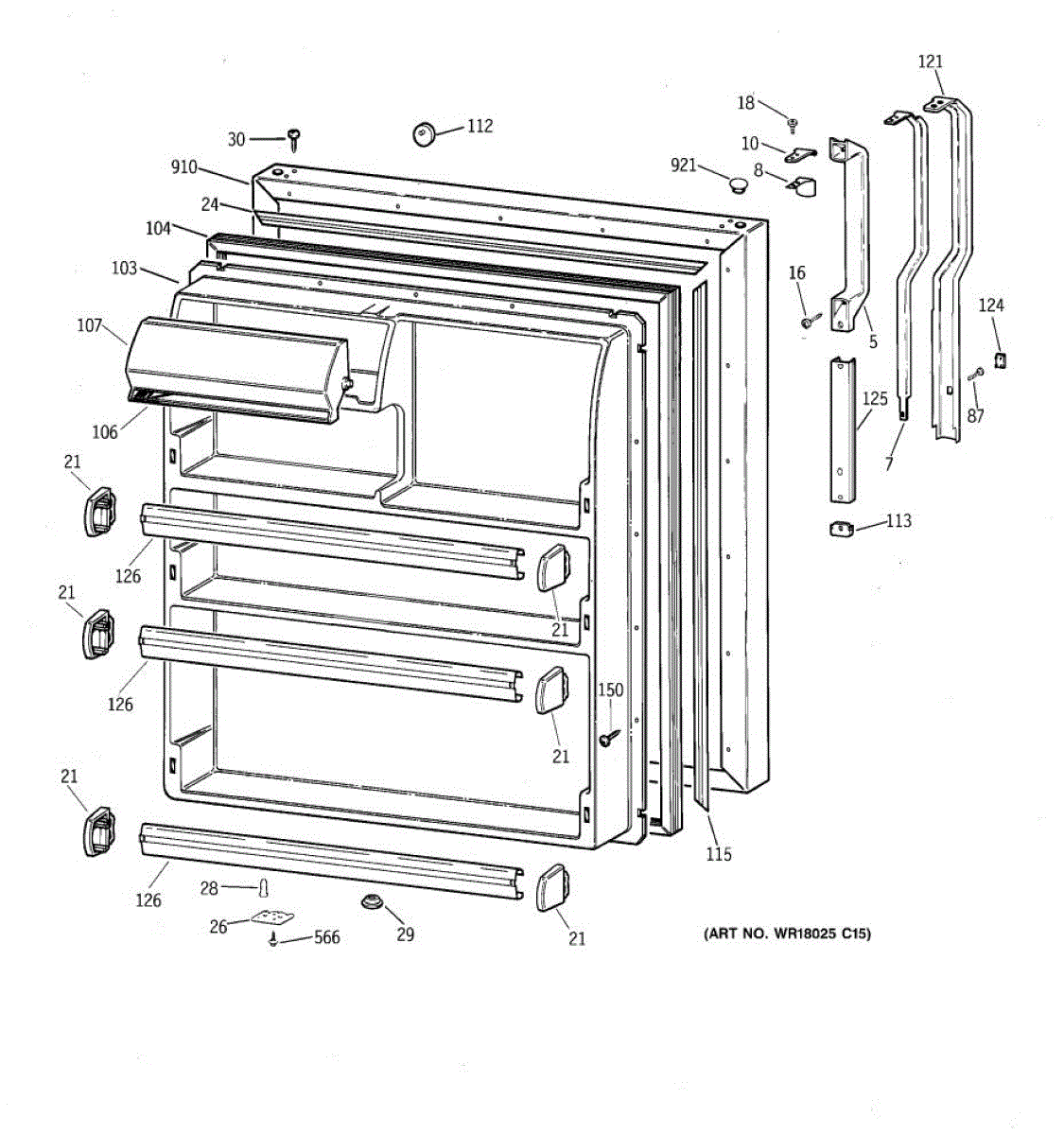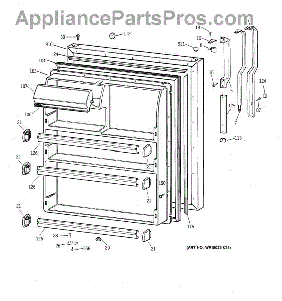 Seals your refrigerator's fresh food door to maintain temperature and prevent air leaks. Replace if you notice condensation, mold, or warm spots inside.