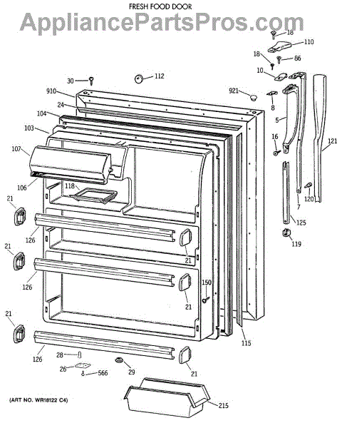 Seals your refrigerator's fresh food door to maintain temperature and prevent air leaks. Replace if you notice condensation, mold, or warm spots inside.