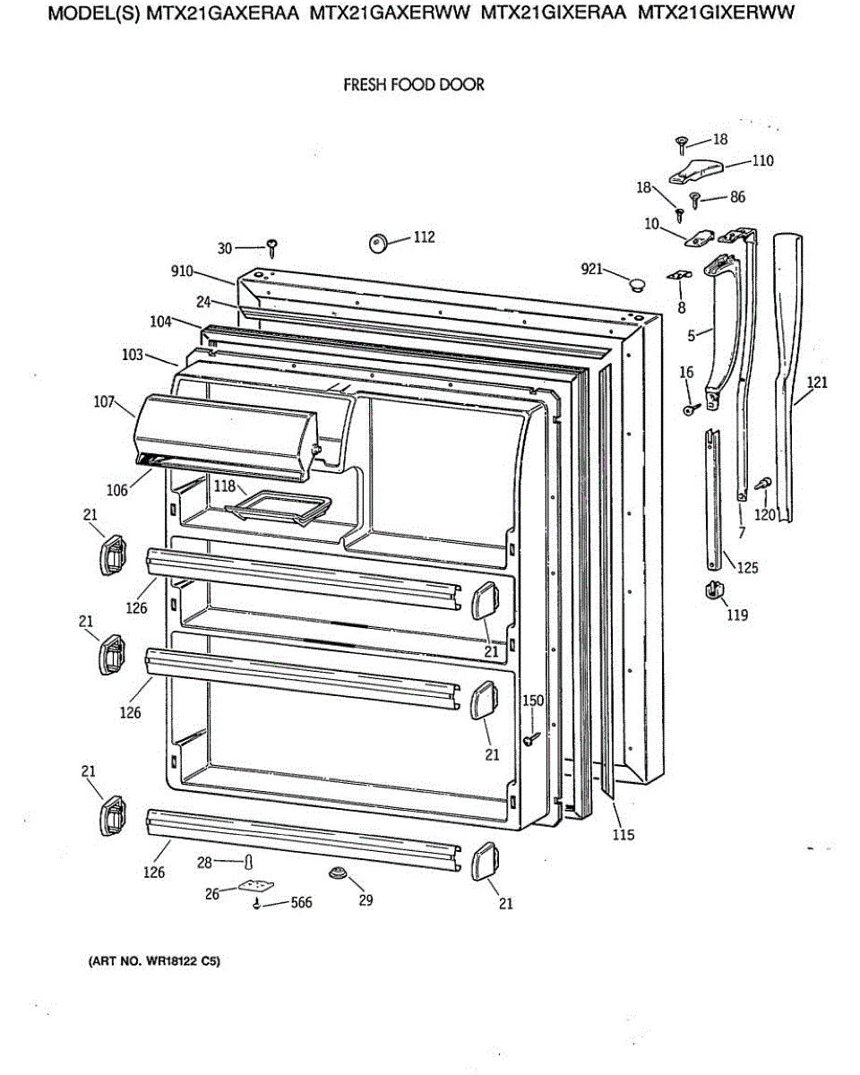 Seals your refrigerator's fresh food door to maintain temperature and prevent air leaks. Replace if you notice condensation, mold, or warm spots inside.