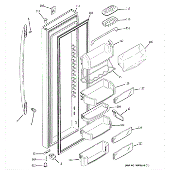 The Door Bin is an OEM part for GE refrigerators. It is a convenient storage compartment located on the interior of the refrigerator door, designed to hold and organize smaller items such as condiments, jars, or beverages.