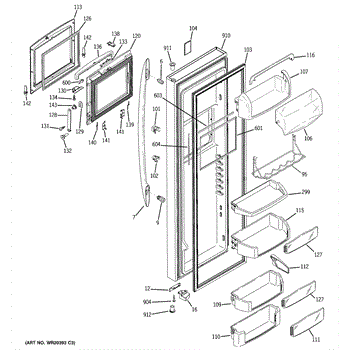 The Door Bin is an OEM part for GE refrigerators. It is a convenient storage compartment located on the interior of the refrigerator door, designed to hold and organize smaller items such as condiments, jars, or beverages.