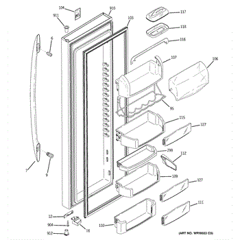 Replacement door bin for side-by-side refrigerators. Mounts inside the door to organize condiments, jars, and beverages. Replace if cracked or broken.